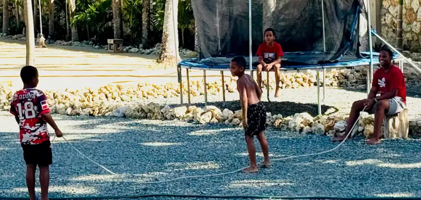 Here’s Lyam and his friends jumping rope on rocks — yes, rocks.