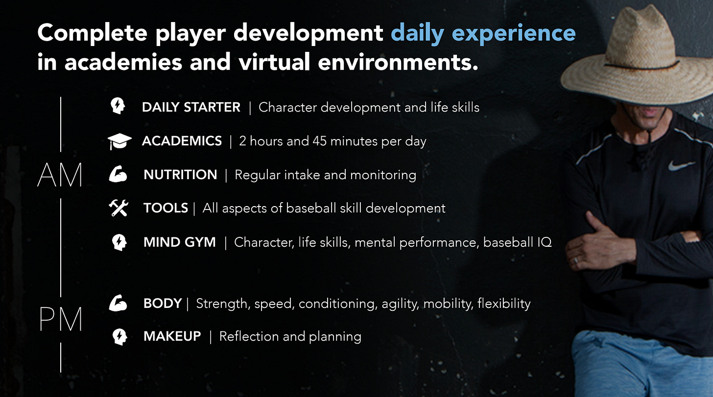 Our mission is to fulfill Nate Trosky’s vision of impacting a generation. Our team — a blend of baseball and business leaders — is united in changing academics and athletics forever. Our regional academies combine school + baseball, backed by groundbreaking whole-person training tech.